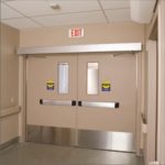 Для более широких проемов можно изготовить полуторные или двупольные двери с дополнительными верхними и боковыми вставками. Все двери могут быть оснащены маятниковыми петлями для оптимизации потока, а также могут быть добавлены окна на уровне глаз, чтобы люди могли видеть, кто стоит за дверью.